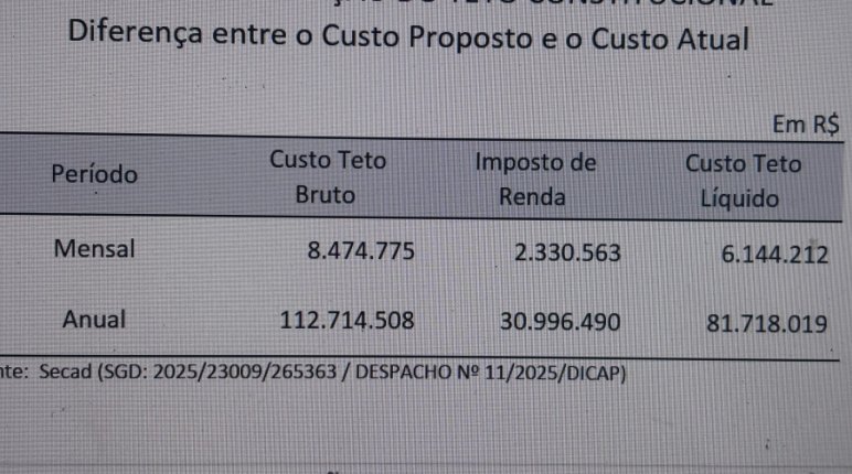 Apontava a Administração aumento de despesas com o PCCR (de hoje) e o teto no valor de R$ 206 milhões anuais. Mas (conforme a Sefaz) não acrescia às receitas o crescimento da arrecadação.