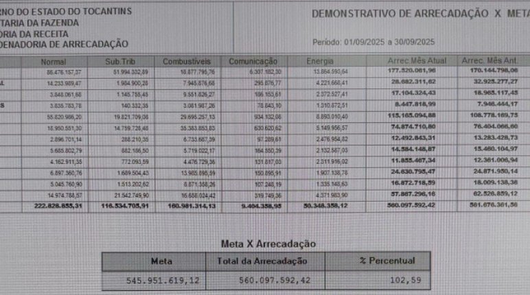 O tesourou fechou o mês de setembro com arrecadação de ICMS na faixa de R$ 560 milhões.