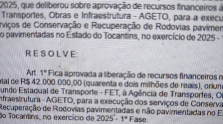 Os recursos serão destinados à Ageto para execução de serviços de conservação e recuperação de rodovias pavimentadas e não pavimentadas.
