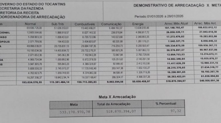 Se executar a meta, ainda assim a arrecadação de janeiro deste ano situará abaixo da correção inflacionária de janeiro a dezembro de 2025% de 4,26%.