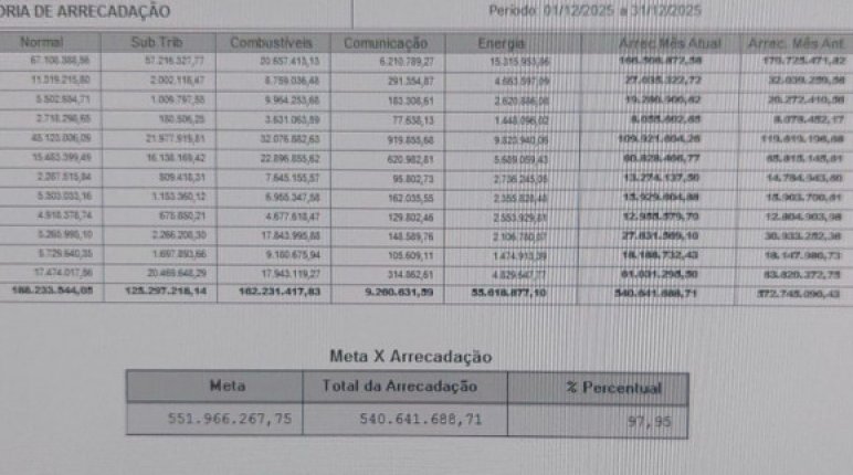 A Fazenda arrecadou em dezembro/25 o montante de R$ 540,6 milhões de ICMS.