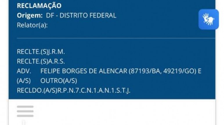 O processo é segredo de Justiça, mas estão lá as iniciais A.R.S e J.R.M como reclamantes. A Reclamação está no bolo dos demais recursos do processo de Wanderlei Barbosa no STF.