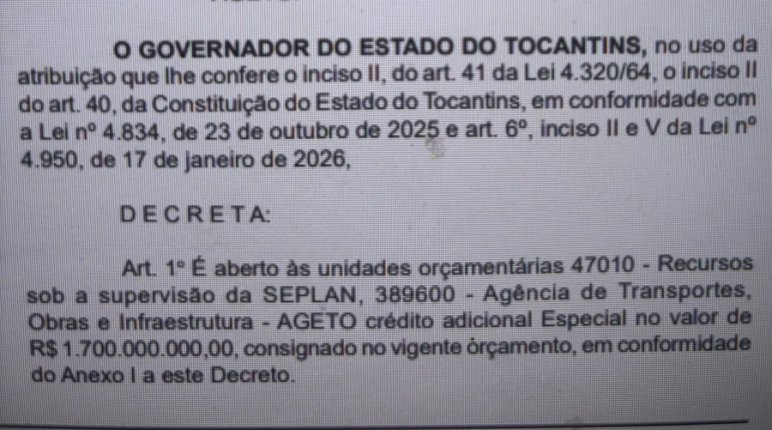 Para referência: o orçamento da Agência de Transportes e Obras na Lei Orçamentária 2026 é R$ 485 milhões.