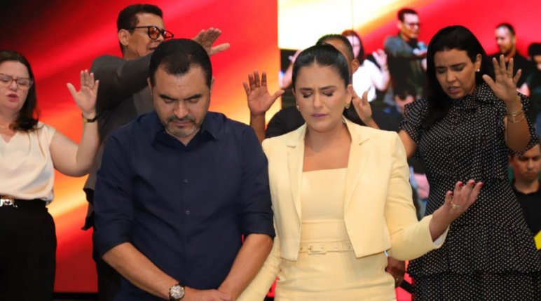 O governador do Tocantins, Wanderlei Barbosa, e a primeira-dama Karynne Sotero participaram, na noite de ontem de um culto de ação de graças realizado na Igreja Crescer, em Palmas. O momento reuniu amigos, fiéis da congregação, líderes religiosos, secretários de governo, lideranças políticas e familiares.