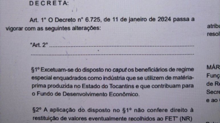 O governo fez uso de um expediente inusitado: por decreto, retirou da obrigação os empresários beneficiados com regime especial enquadrados na industria que se utilize de "matéria prima" produzida no Estado e que contribuam para o Fundo de Desenvolvimento Econômico.