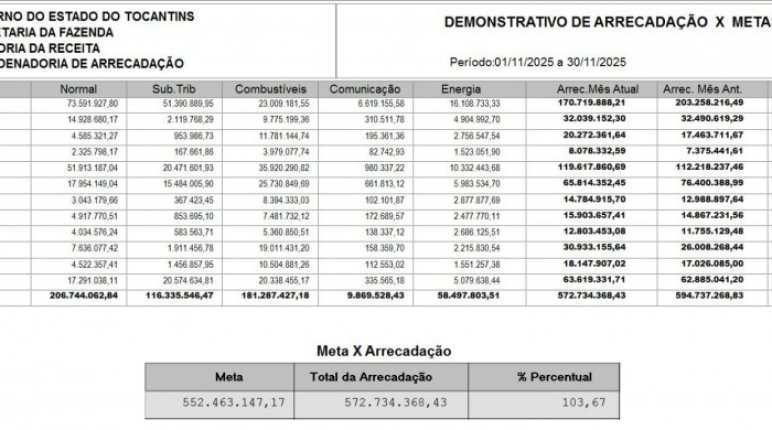 O governo fechou novembro arrecadando R$ 572 milhões de ICMS (a meta era R$ 552 milhões).