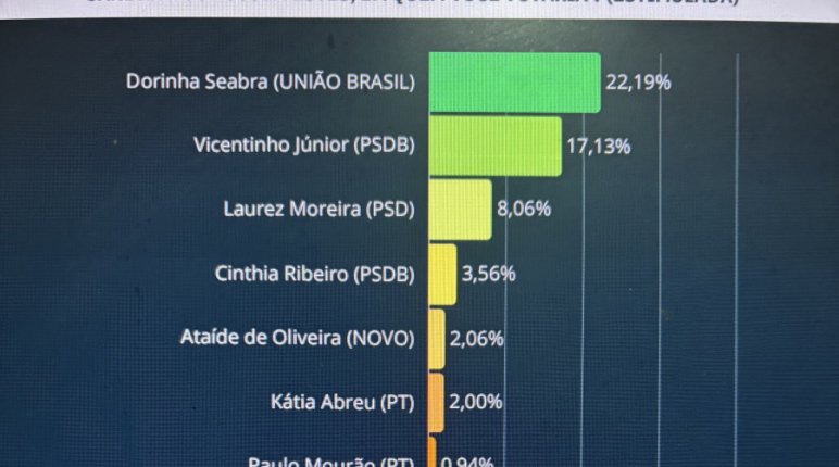 Se as eleições fossem hoje a senadora Dorinha Seabra (UB) e o deputado federal Vicentinho Jr (PSDB) iriam para o segundo turno.