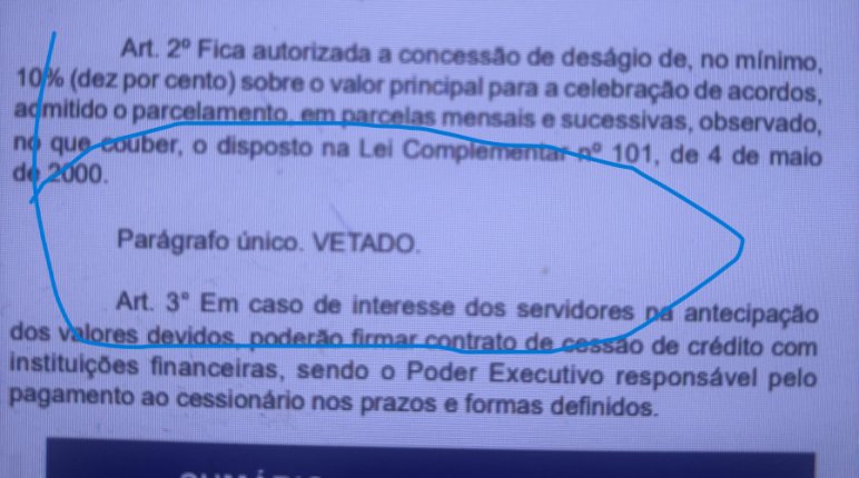 O governo vetou na sexta-feira (no Diário Oficial) parte da lei 5.004/26 aprovada pelos deputados (autografo de lei 72/1º de abril de 2026).
