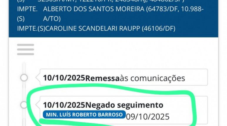 O Ministro seguiu o parecer da Procuradoria Geral da República. A decisão é de ontem mais foi movimentada nesta sexta no processo.
