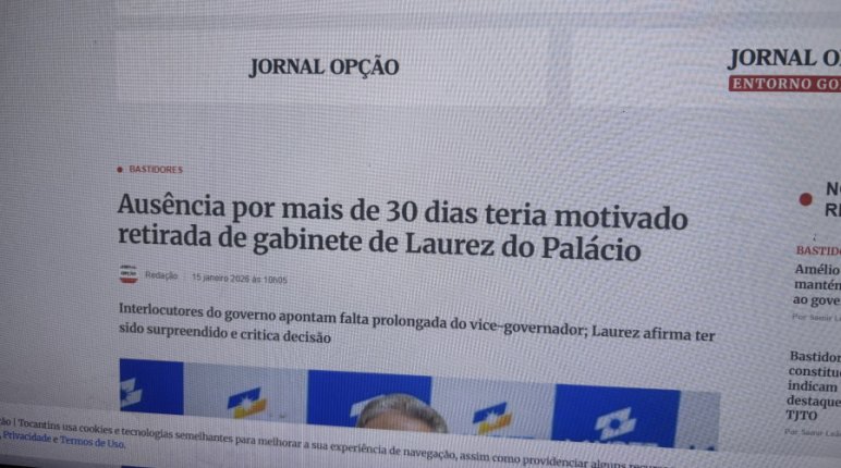 “Interlocutores do Palácio Araguaia informaram ao Jornal Opção Tocantins que a retirada do gabinete do vice-governador Laurez Moreira (PSD) da sede do Poder Executivo estadual teria sido motivada pela ausência do gestor no espaço por mais de 30 dias.”