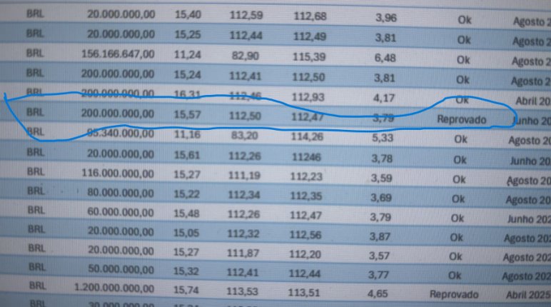 Relatório do dia 1º de outubro contraria a informação. A operação aparece como rejeitada pela taxa de juros.