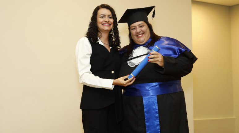 A emoção tomou conta do palco quando os formandos dividiram suas experiências. "Houveram dias em que pensei em desistir, mas a vontade de concluir meus estudos sempre falou mais alto! A cada dificuldade, eu lembrava dos motivos que me fizeram começar: o desejo de ter novas oportunidades, de ser exemplo para minha família e acima de tudo, de provar para mim mesmo que nunca é tarde para aprender. E eu não caminhei sozinha, essa vitória não é só minha, é nossa!", disse Sadya Rocha Barros Pimenta, sob os aplausos da plateia. A estudante representou a turma que homenageou a professora Letícia Zanholo Santo pelo apoio recebido.