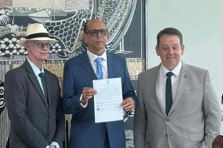 O presidente do TCE, Alberto Sevilha, deu posse na manhã deste 1º de janeiro de 2026 ao procurador geral de contas Marco Antônio Modes (termo de posse 01/26, pub...